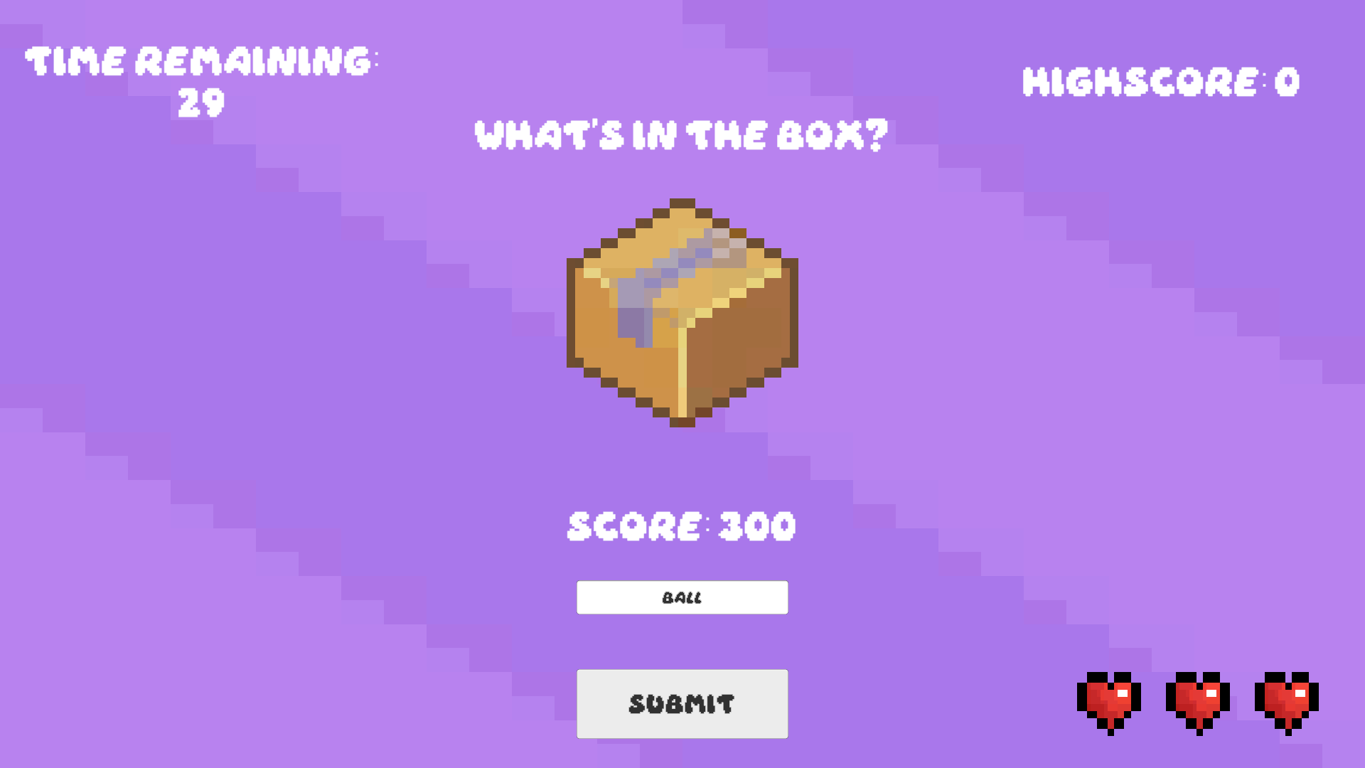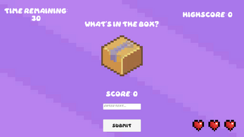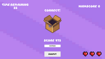 In this game you try to guess what random item can be in the box. As your score increases, you get less hints and less time to guess the item. Fullscreen recommended